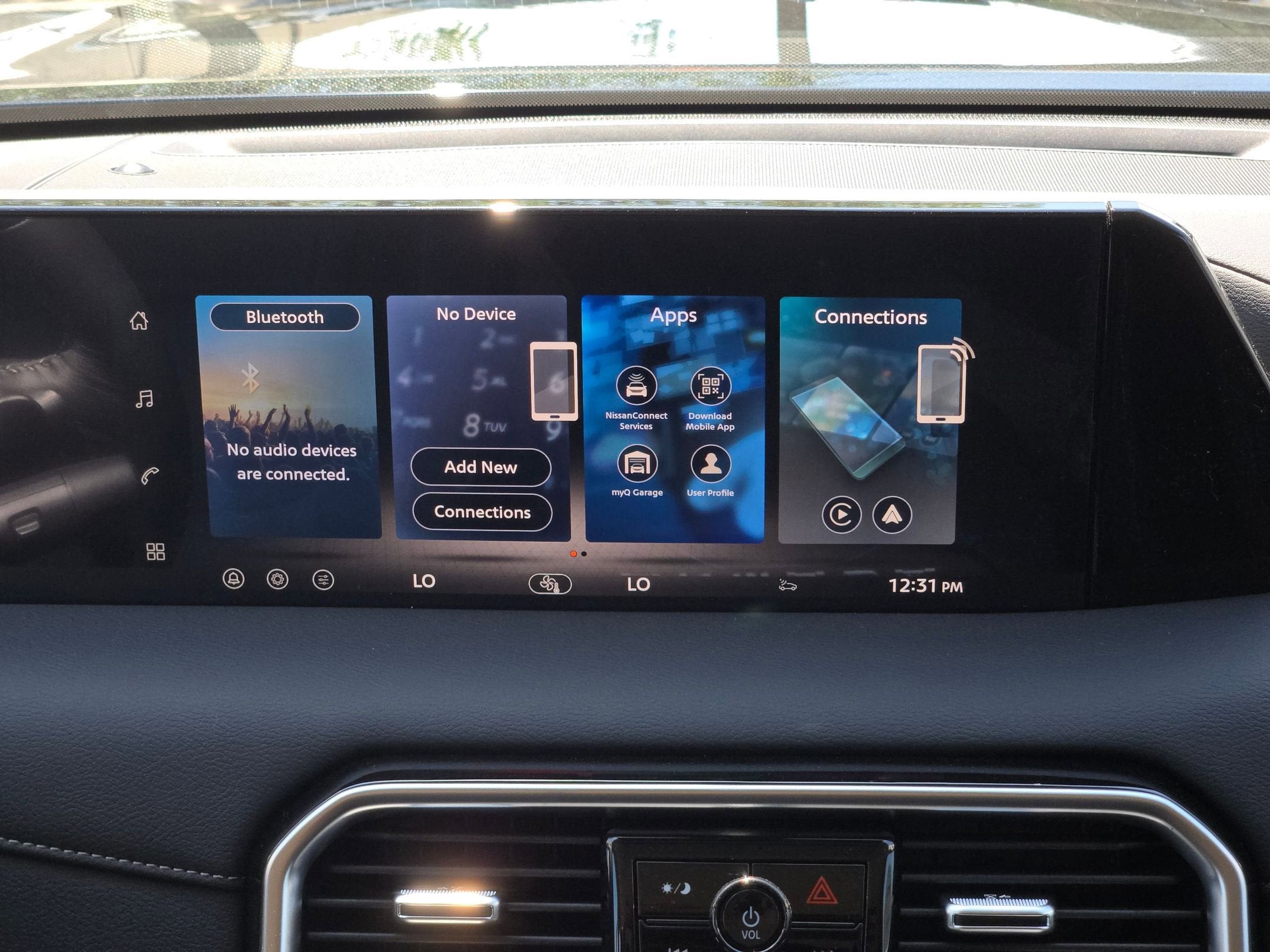 - Radio: NissanConnect w/SiriusXM 360L -inc: 6 speakers w/advanced audio features, 12.3" center touch-screen display, wireless Apple CarPlay and Android Auto, Bluetooth® hands-free phone system, Siri Eyes Free, hybrid radio, 5G capability, 2 USB type-C connection ports in front, Amazon Alexa w/Hotword, voice recognition and system controlled navigation w/traffic information