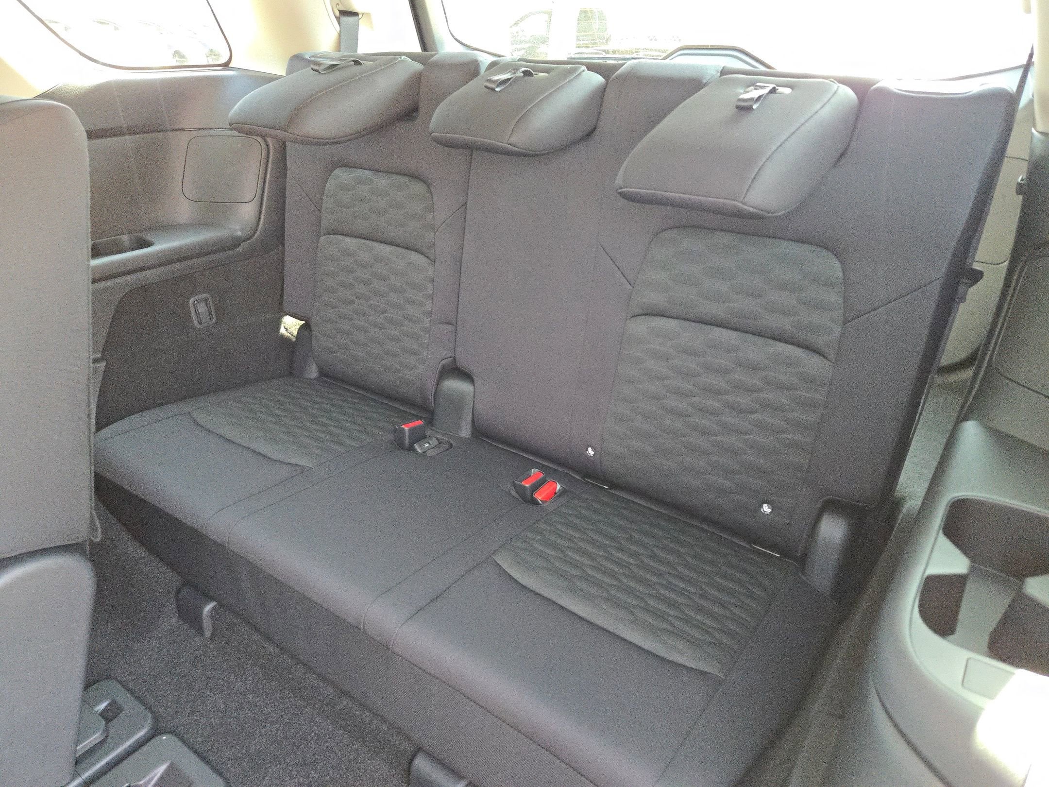 - Fixed 60-40 Bench Cloth 3rd Row Seat Front, Manual Recline, Manual Fold Into Floor, 3 Manual and Adjustable Head Restraints