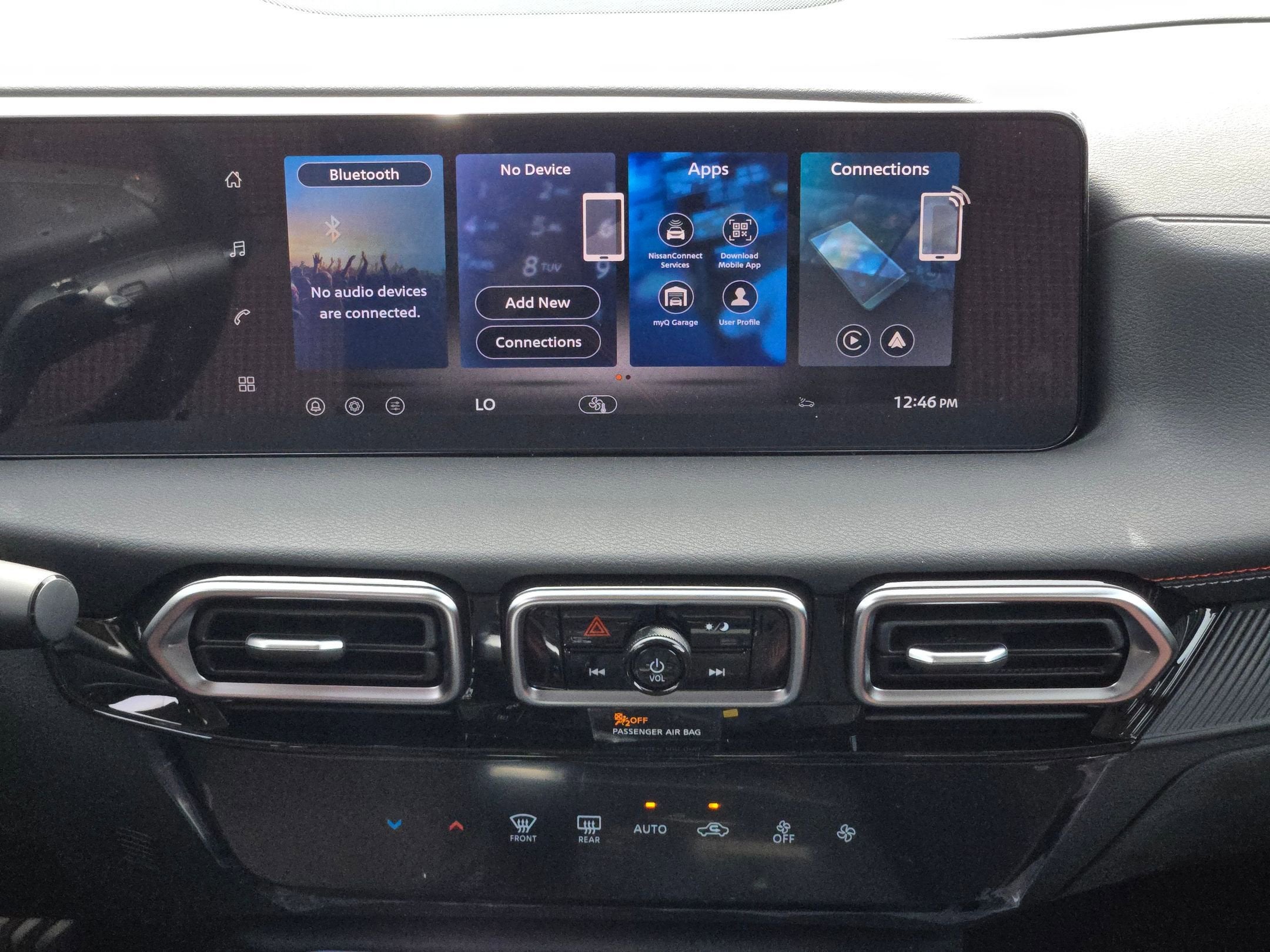 - Radio: AM/FM w/RDS/MP3 -inc: 6 speakers, 12.3" NissanConnect multimedia center display, Bluetooth® hands-free phone system, streaming audio via Bluetooth®, hands-free text messaging assistant, Siri Eyes Free, Google Assistant voice recognition, wireless Apple CarPlay and Android Auto and (2) front USB connection port (type C)