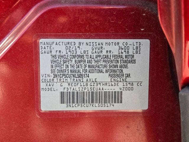 Cayenne Red/Super Black 2019 Nissan Kicks SV SV 1.6L 4-Cylinder DOHC 16V CVT with Xtronic 31/36 City/Highway MPG