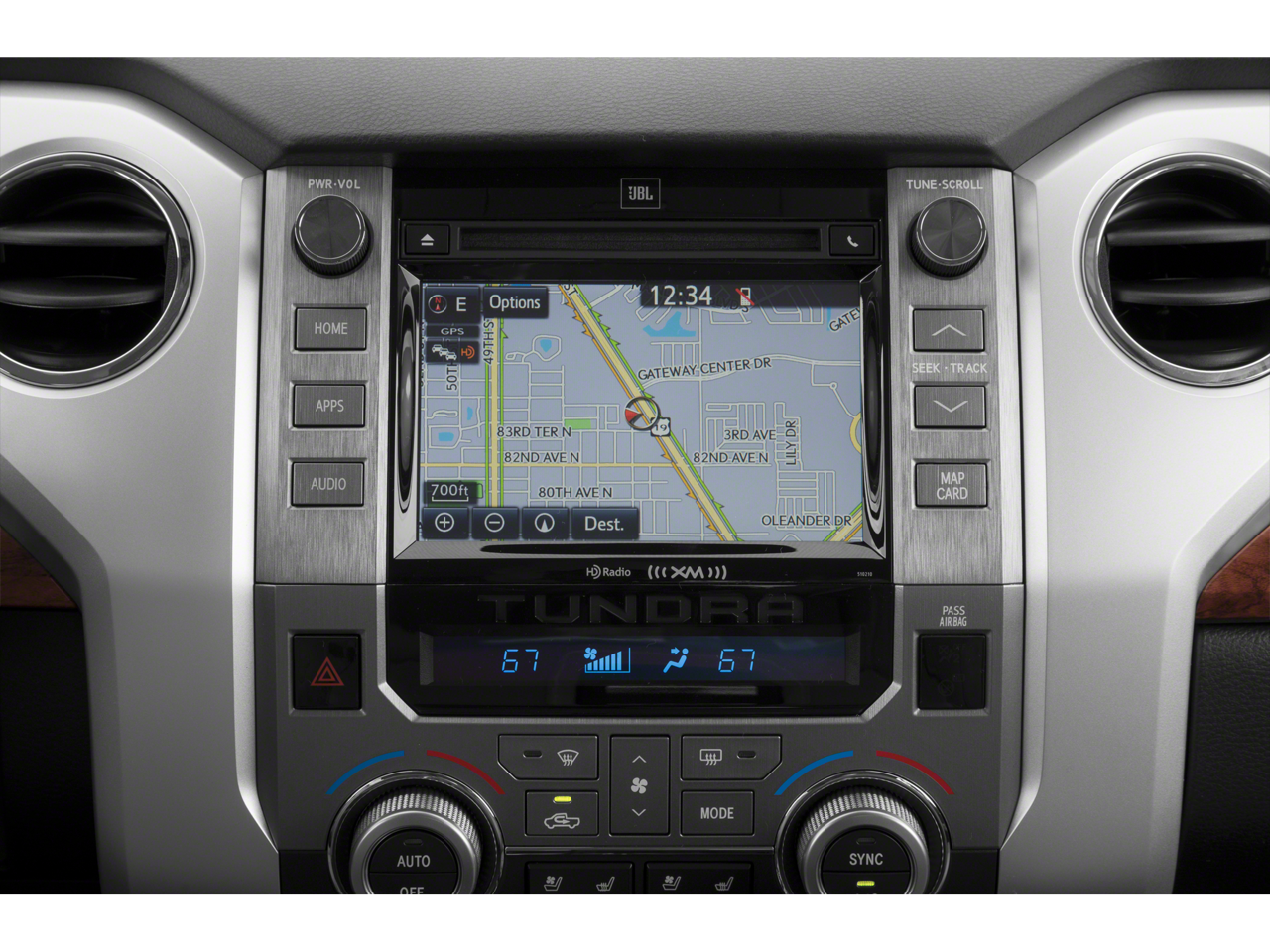 - Radio: Entune Premium w/JBL Audio & Navigation -inc: AM/FM/HD Radio, CD player, integrated navigation system, AM/FM cache radio, 12 JBL speakers including subwoofer and amplifier, 7" high-resolution touch-screen display w/split-screen, auxiliary audio jack, USB port, HD predictive traffic and Doppler weather overlay, Bluetooth® hands-free phone capability w/advanced voice recognition, phone book access and music streaming and Siri Eyes Free