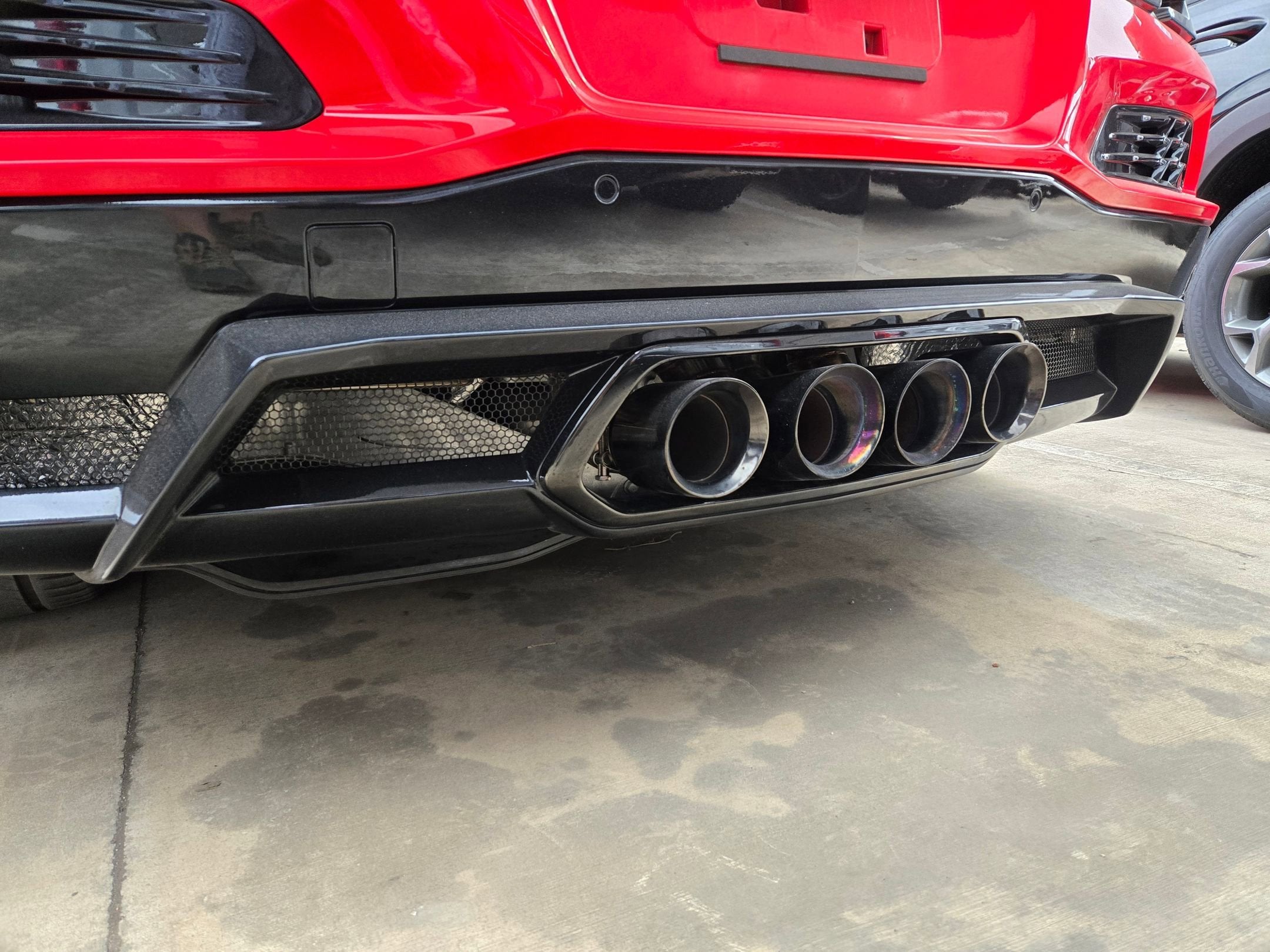 - Exhaust, performance aggressive exhaust sound varies with driver mode selected, with stainless-steel tips